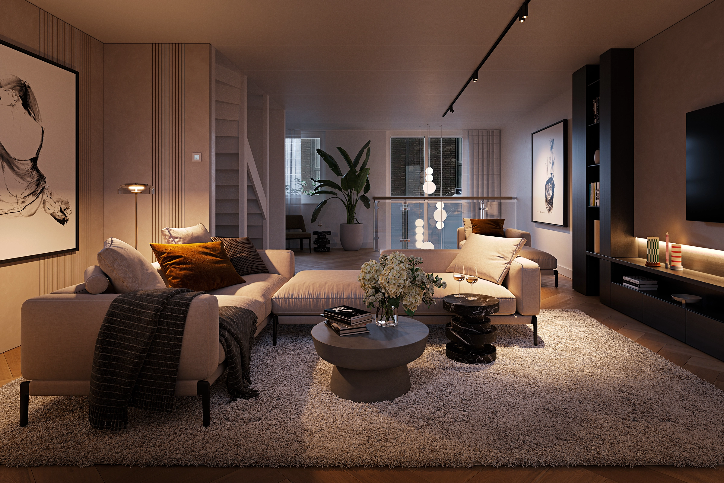Onze 3D-visualisaties kenmerken zich door verrassende camerastandpunten, belichting, materialisatie, zichtlijnen en een scherp oog voor detail. Met grenzeloze creativiteit vertaalt ons betrokken team van 3D-artists, architecten en interieurontwerpers uw idee in treffende visualisaties. Zodat het écht tot leven komt.