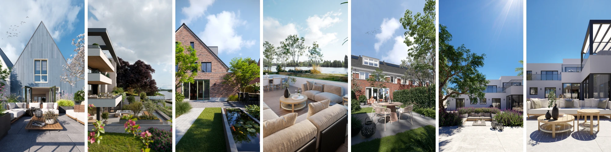 - Creëer emotie en beleving: Door buitenruimtes visueel in te vullen, laten we zien hoe een woning echt tot leven komt. Zo zien toekomstige bewoners zichzelf al zitten op zonnige dagen en lange zomeravonden.