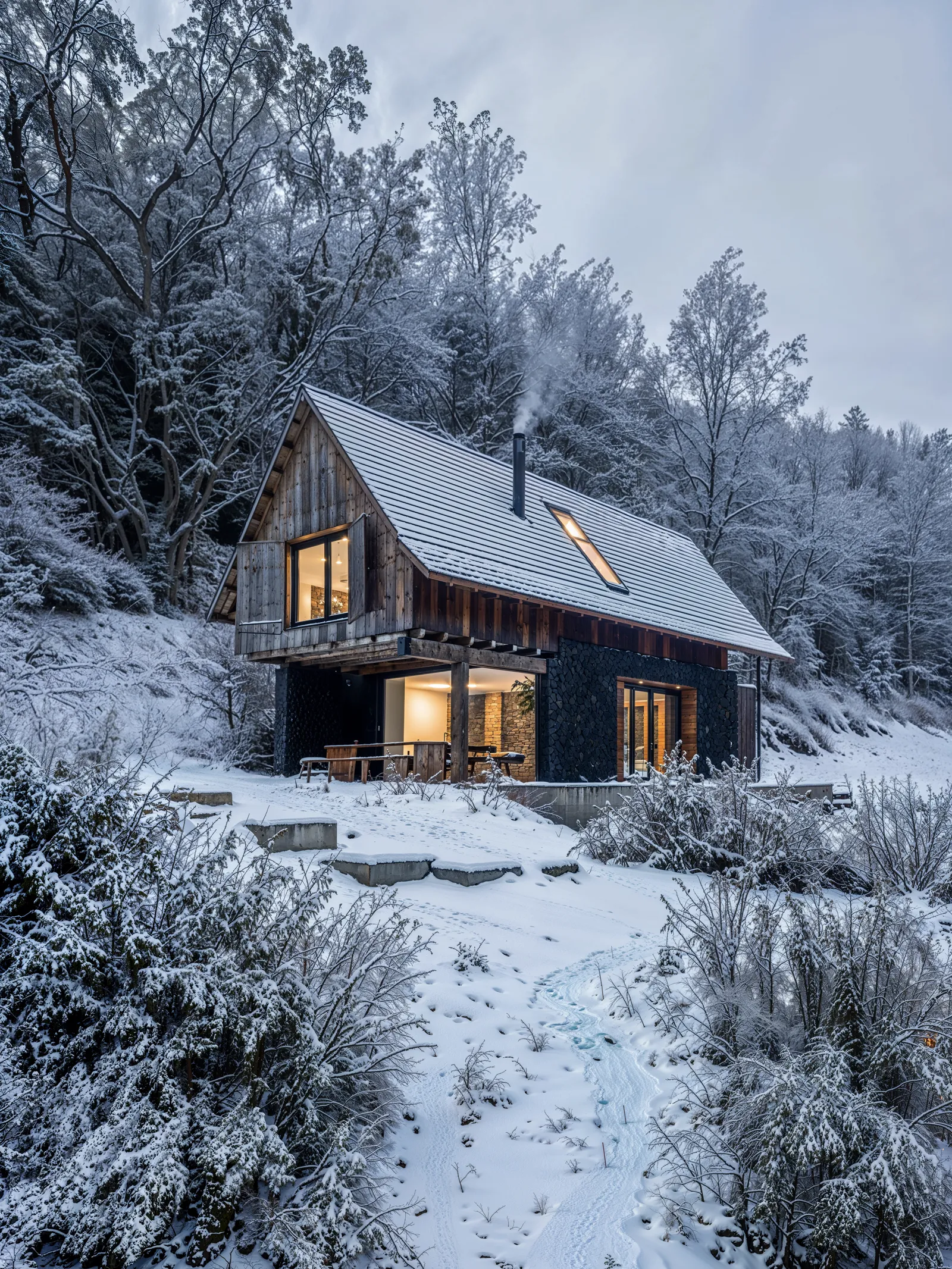 - Binnenverlichting: Voor interieurscènes kan het contrasteren van het koele, diffuse buitenlicht met warme binnenverlichting (zoals haardvuur, kaarsen, of warme LED-verlichting) een gezellige en uitnodigende sfeer creëren, typisch voor de winter.